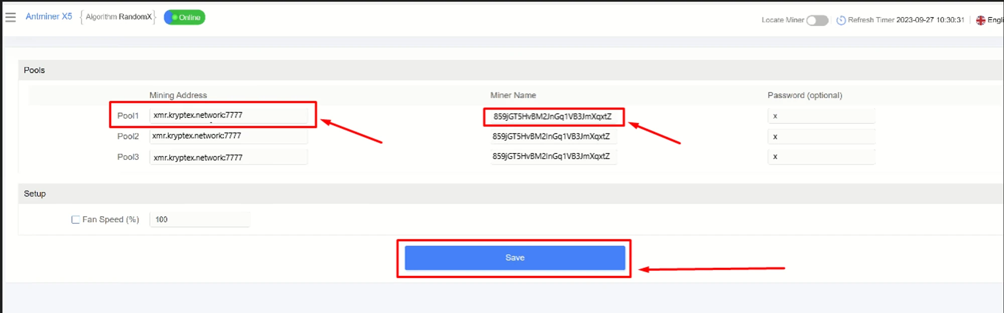 Antminer X5، في وقت كتابة هذا النص، هو الجهاز الوحيد لـ XMR الذي يمكن تعدينه على مجمع Kryptex PPS.