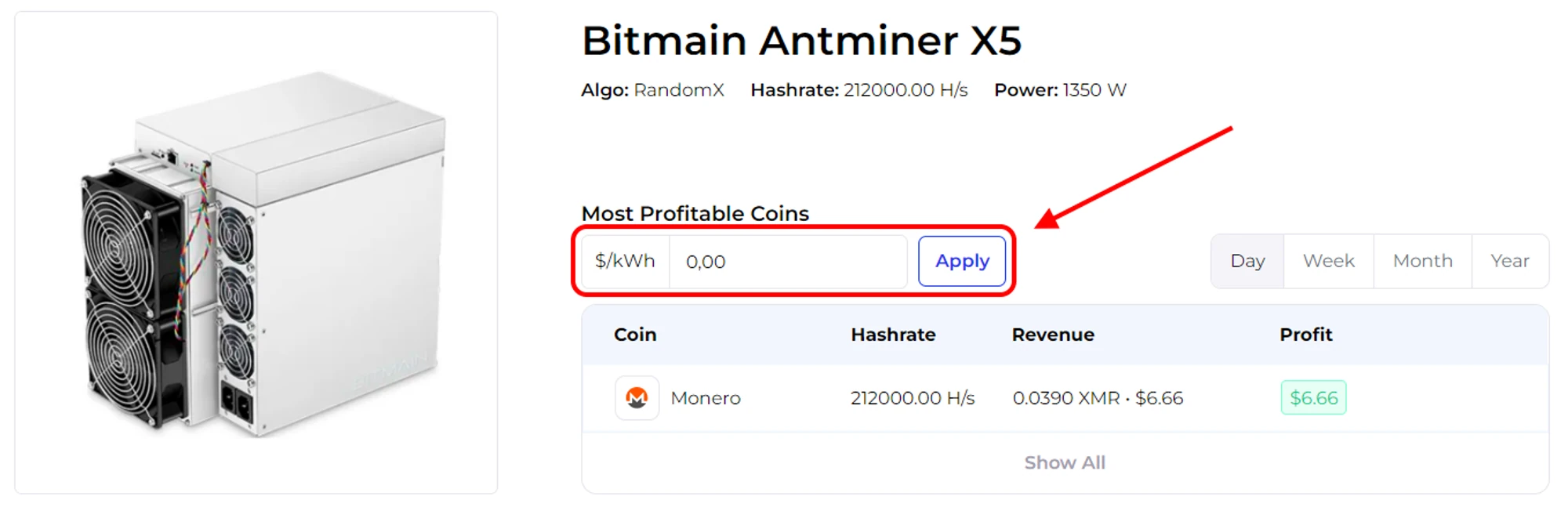 حاليًا، ربحية جهاز Antminer X5 ASIC حوالي 6 دولارات/اليوم، باستثناء تكاليف الكهرباء.