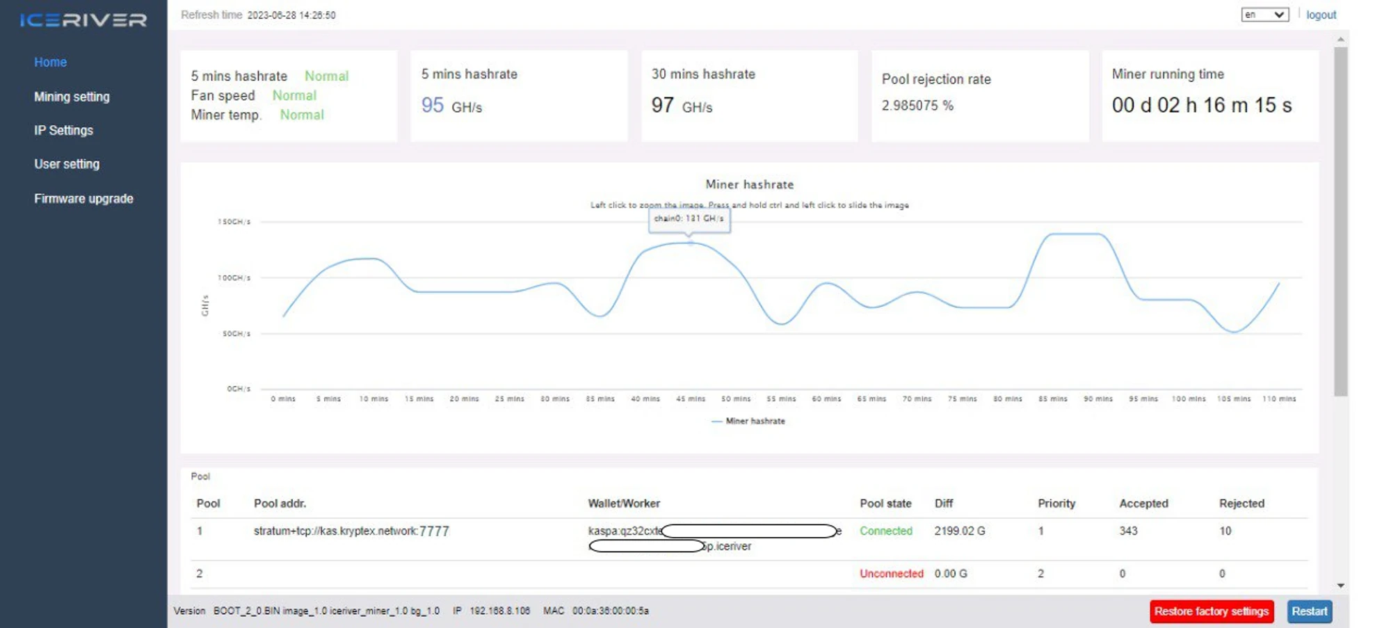 https://pool.kryptex.com/en/articles/iceriver-ks1-overclocking-en - IceRiver KS2. يمكنك الآن الاختيار من بين: 2500 Ghs، 2800 Ghs.