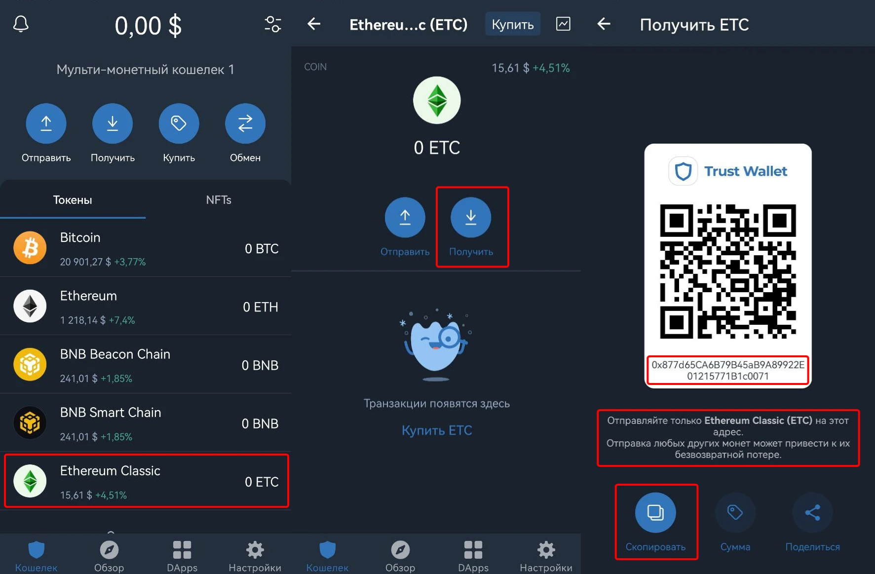 - Для Ethereum Classic ETC мы рекомендуем Trust Wallet или Metamask.io (Подробная инструкция тут)