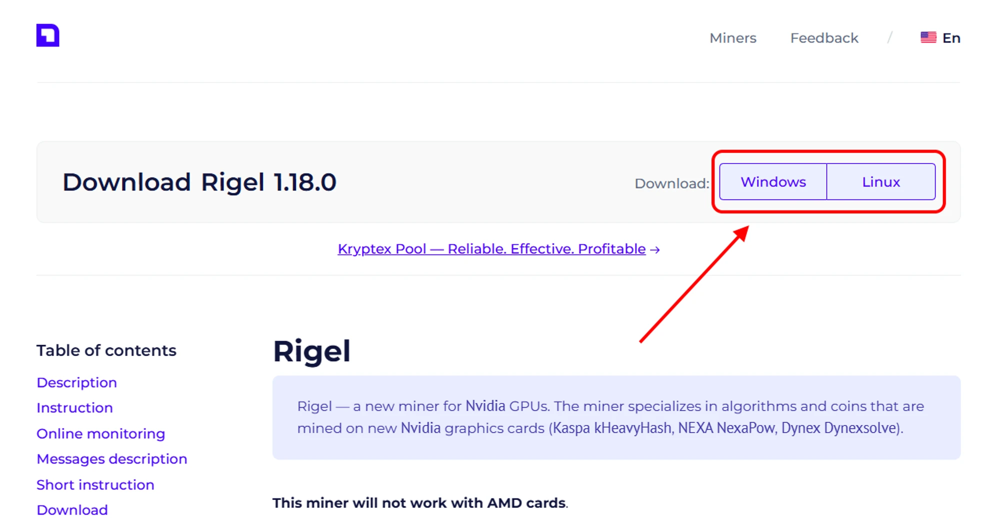 Переходимо на сайт miner.download та завантажуємо потрібний майнер для вашої операційної системи (Windows або Linux).