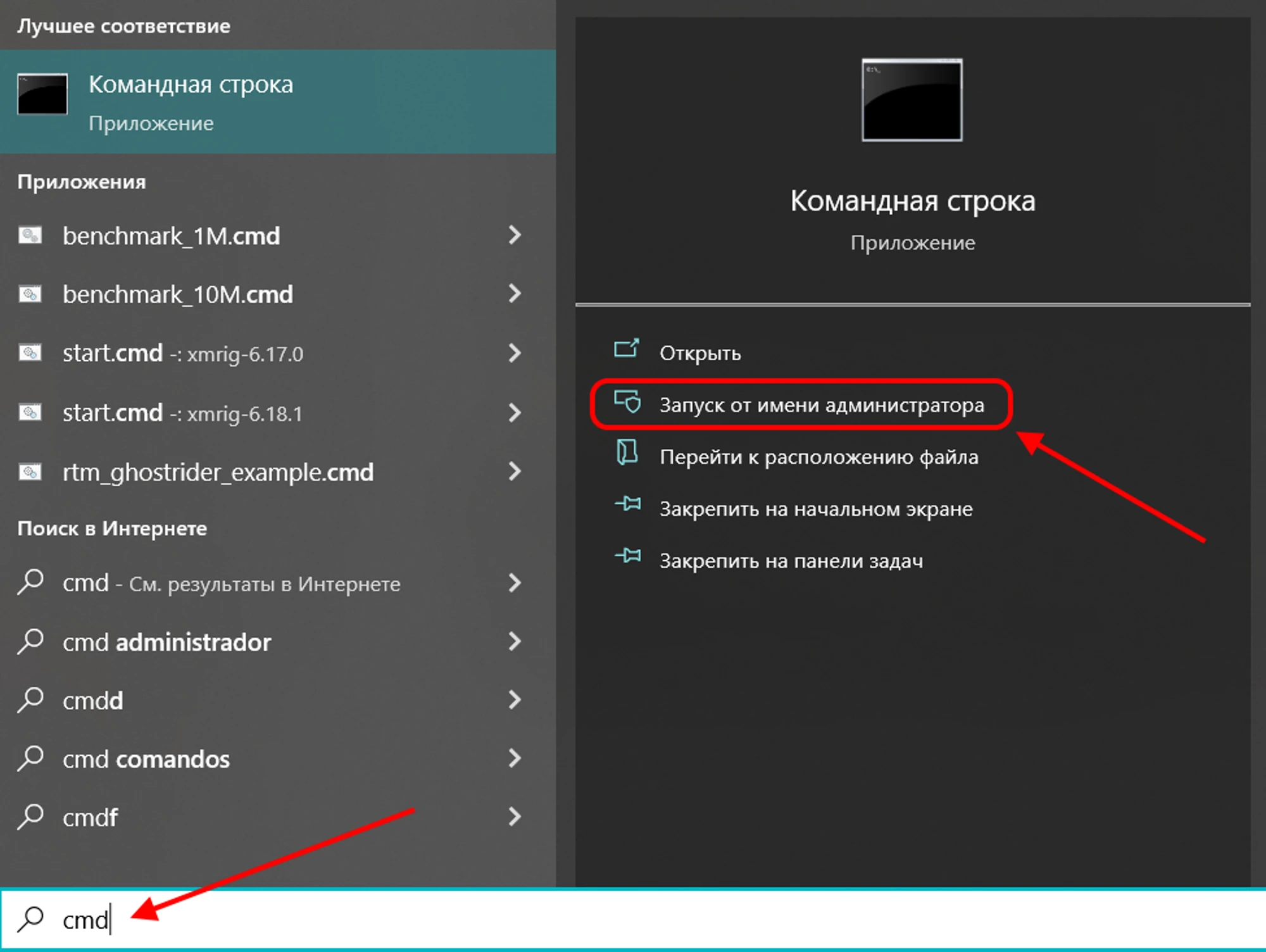 cmd, и выберите пункт “Запуск от имени администратора”.