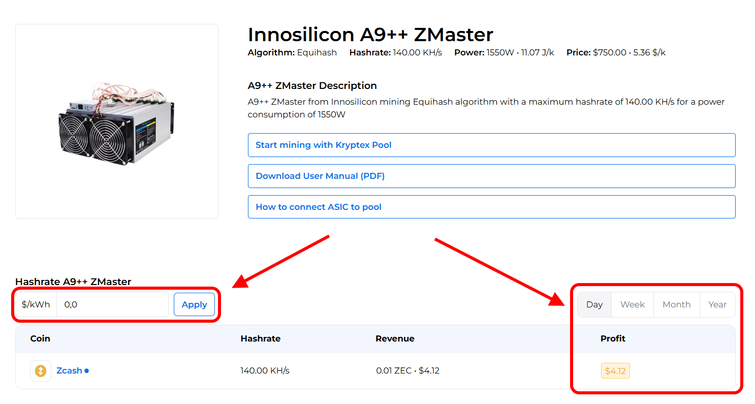 At the time of writing, the profitability of the Innosilicon ZMaster A9 ASICs varies from $1.4/day to $4.1/day, depending on the model, and excluding electricity costs.