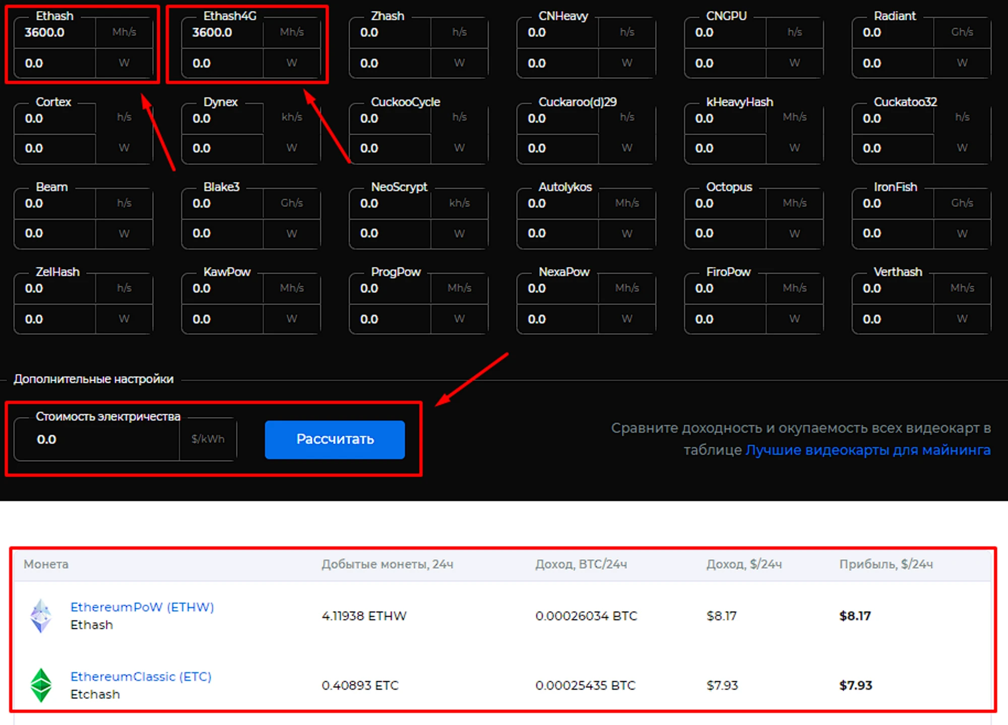 Мы рекомендуем проверить фактическую доходность в нашем калькуляторе майнинге, где вы так же сможете посчитать доходность с учётом ваших тарифов на электроэнергию.