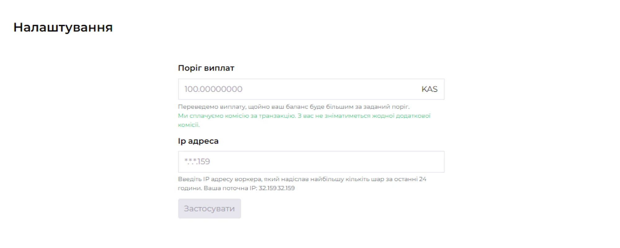 IP-адреса використовується для зміни порога виплат у ваших налаштуваннях на пулі.