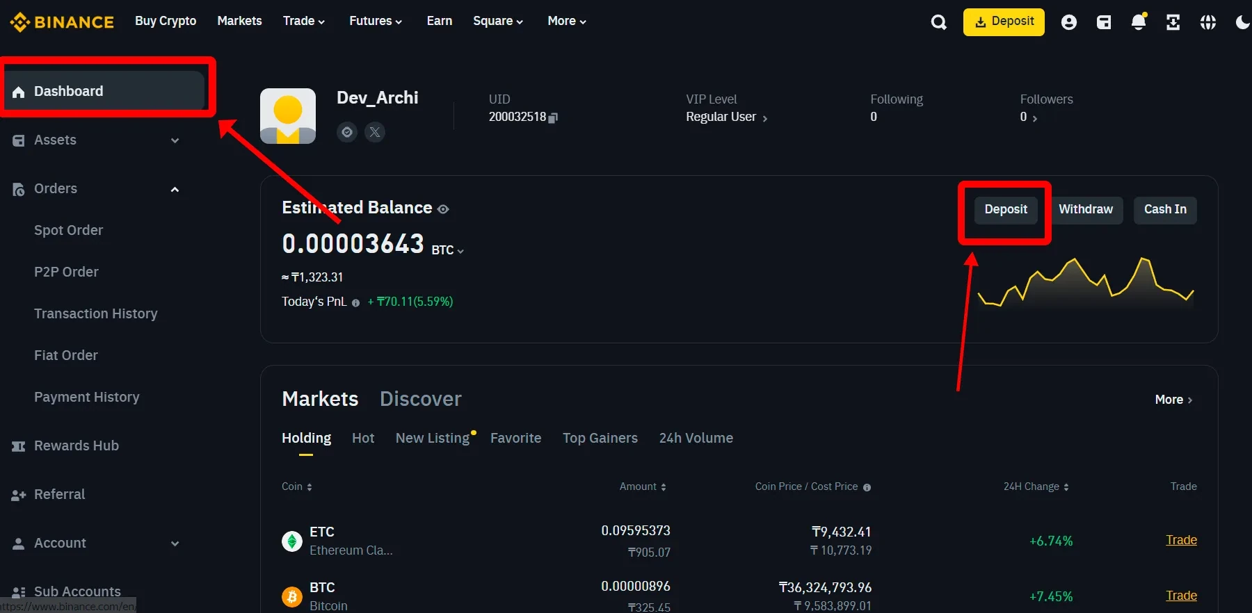 After registering, go to “Dashboard” → “Deposit.”