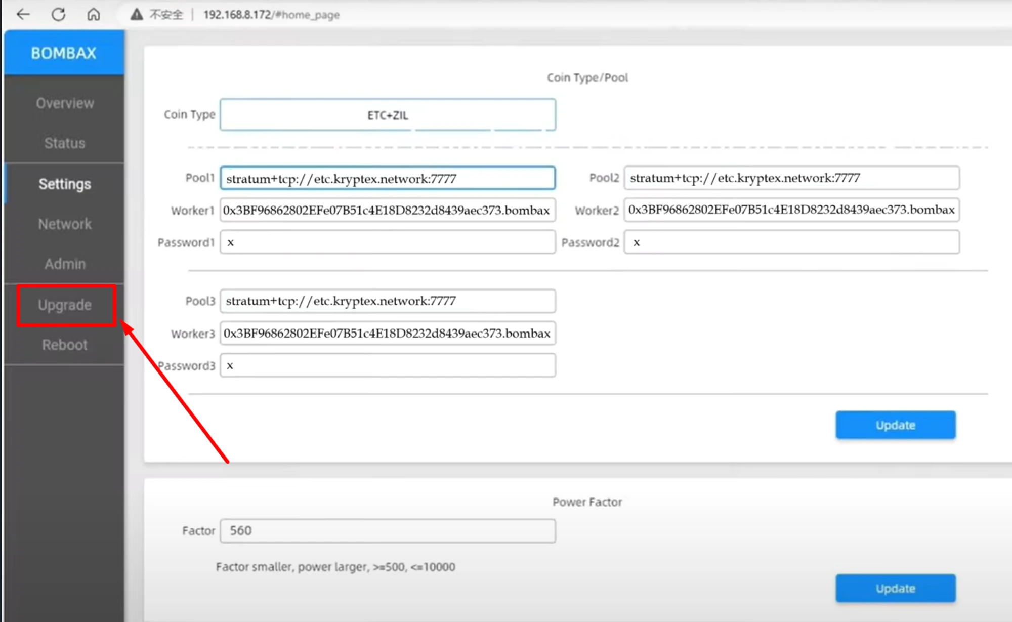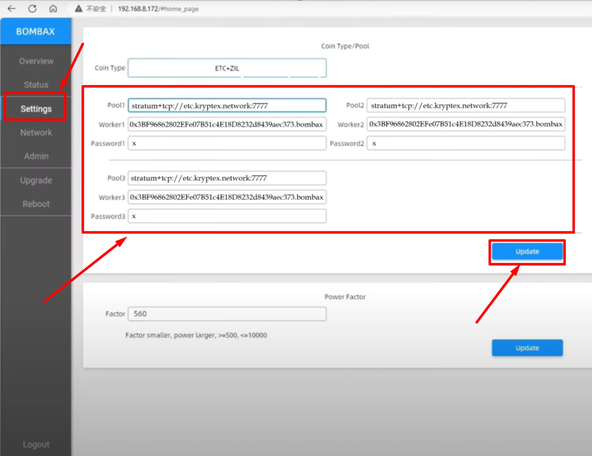Click “Update” to save the settings, and restart mining.
