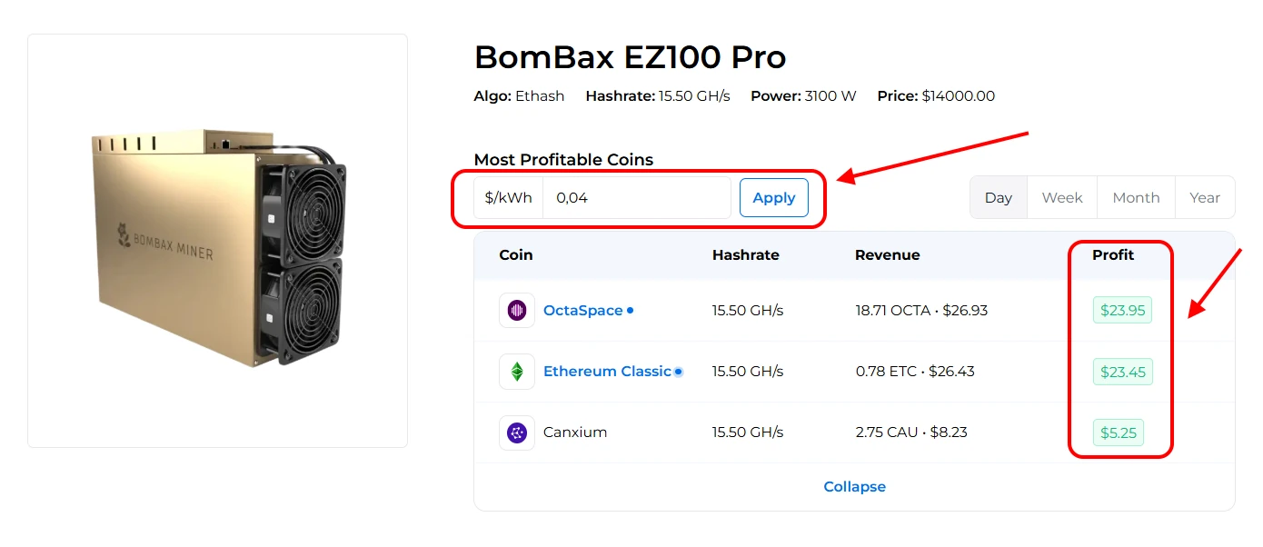 Currently, the daily profitability of Bombax EZ100-C is about ~5$, excluding electricity costs. The EZ100-Pro version has a daily profitability of about 24$.