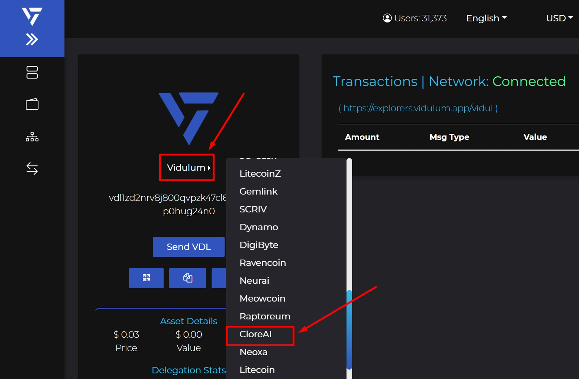 How to register an CLORE wallet in Vidulum Wallet