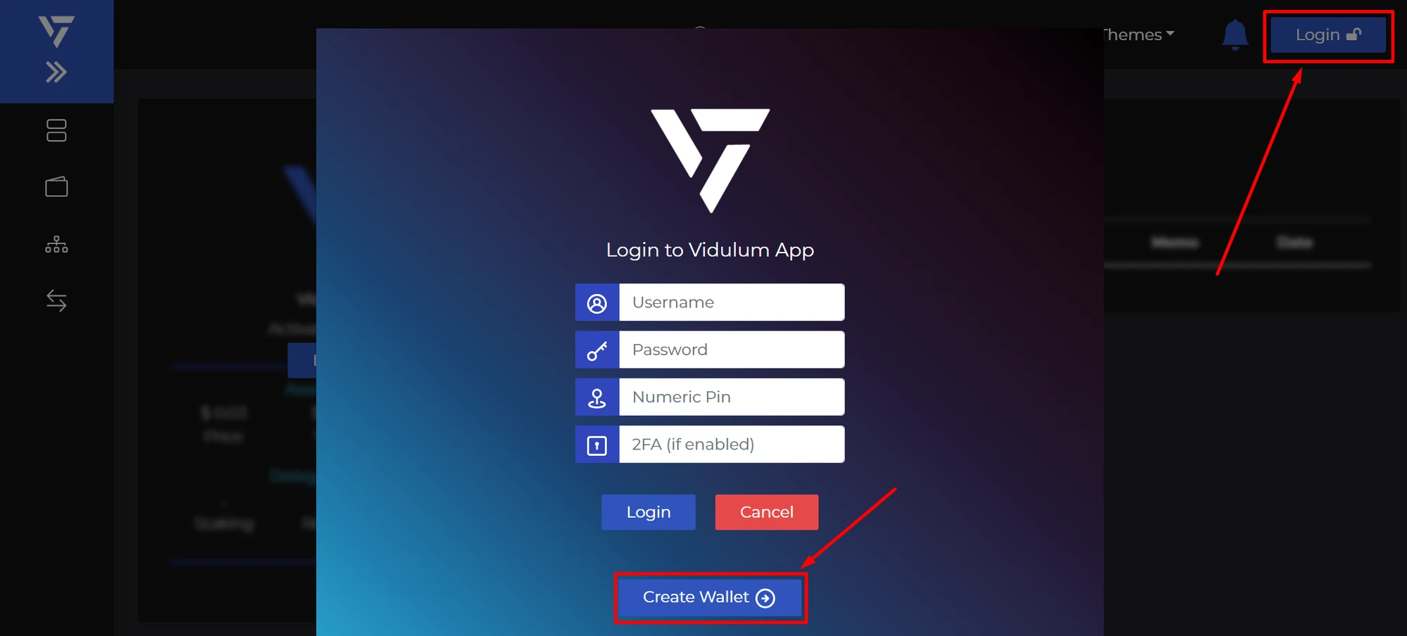 Click "Login" → “Create Wallet”;
