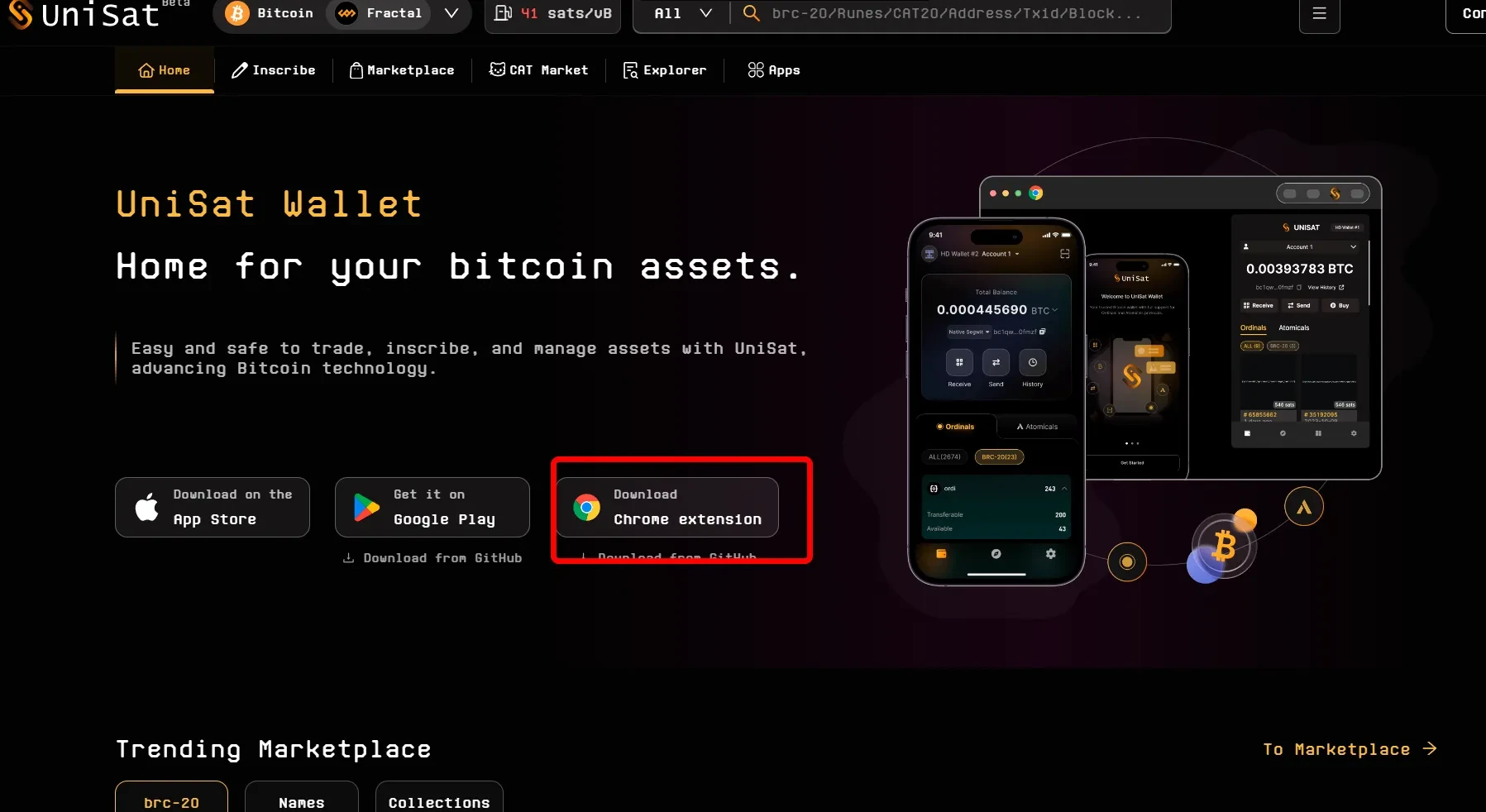 Unisat Wallet is a simple and secure wallet for FB, recommended by developers. You can use either the mobile app on your smartphone or the browser extension.