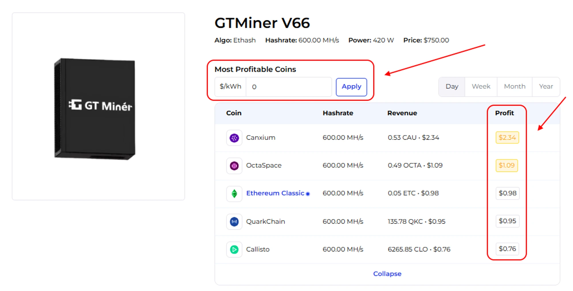GTMiner V66, V88 Profitability