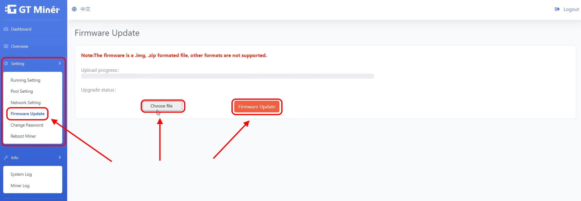 GTMiner V66, V88 Firmware Update