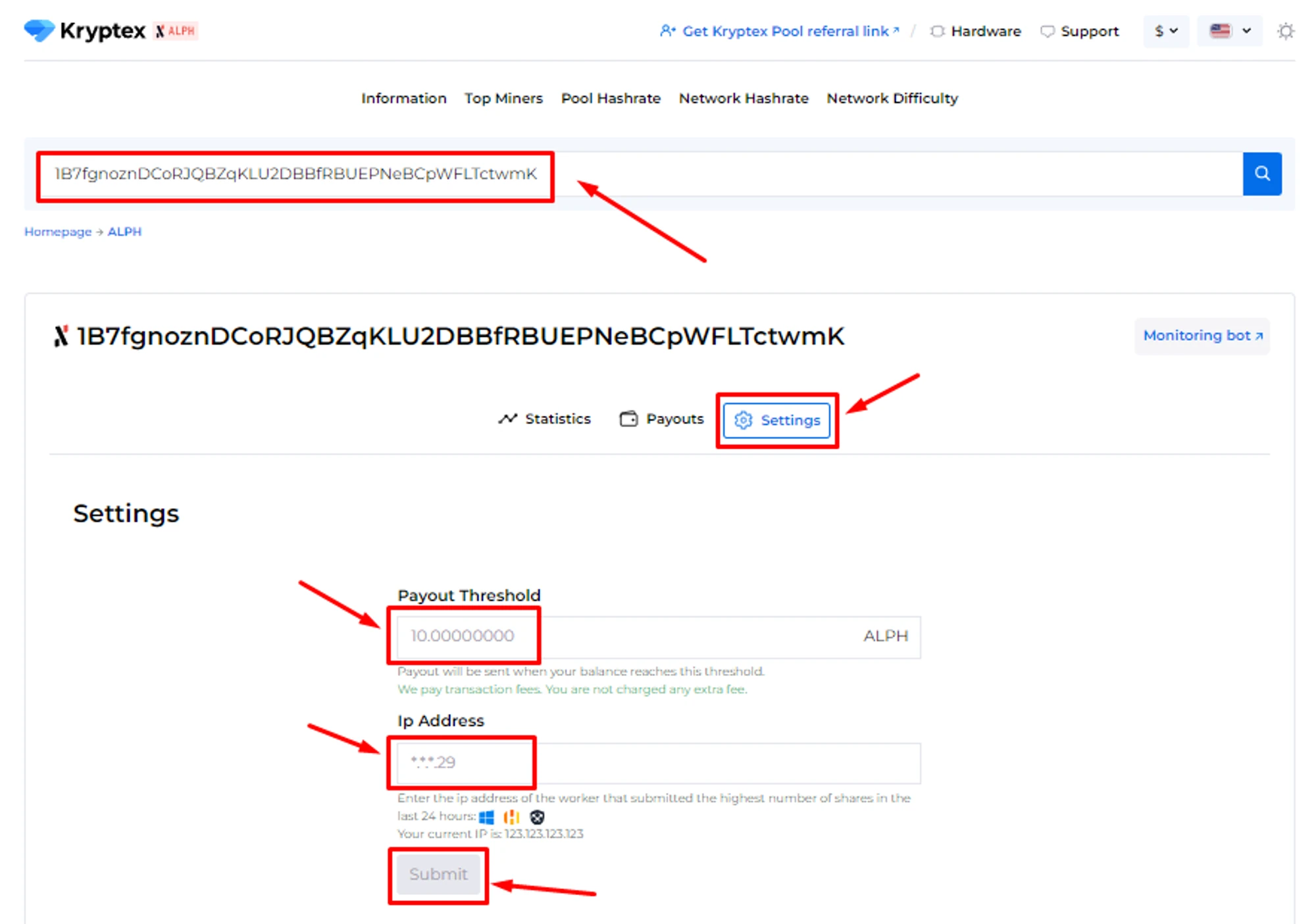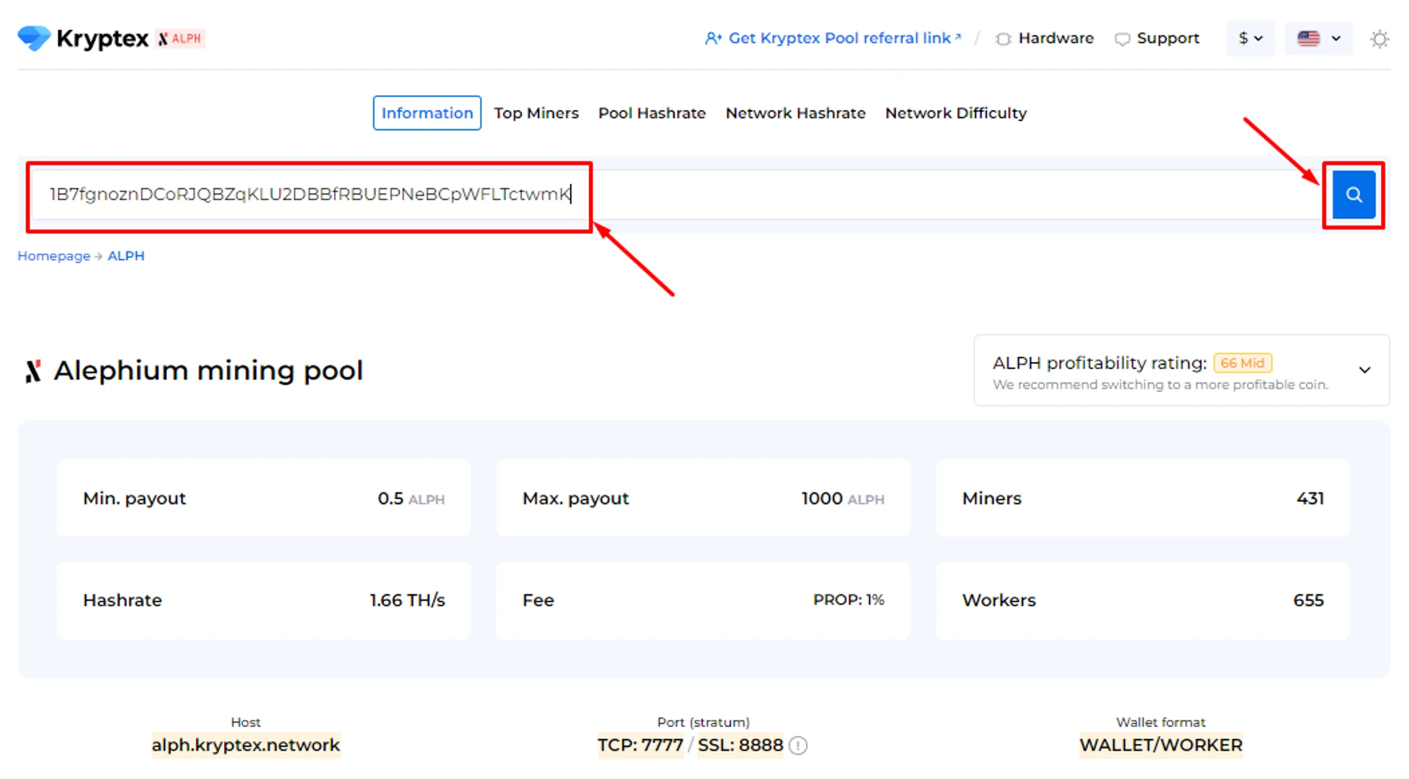 Wallet/Worker: ALPH_Wallet_Address.WorkerName