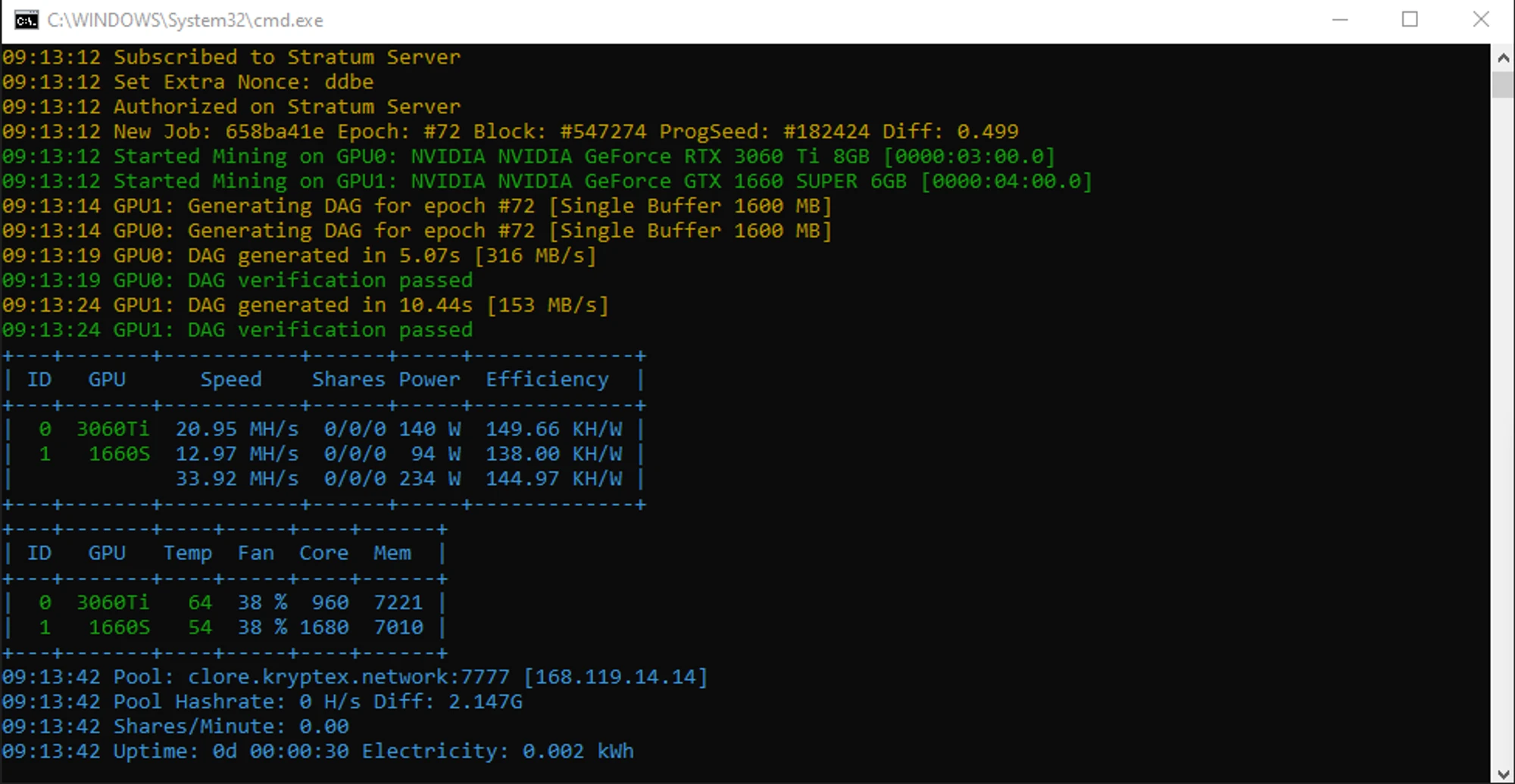 Pool address: clore.kryptex.network:7025