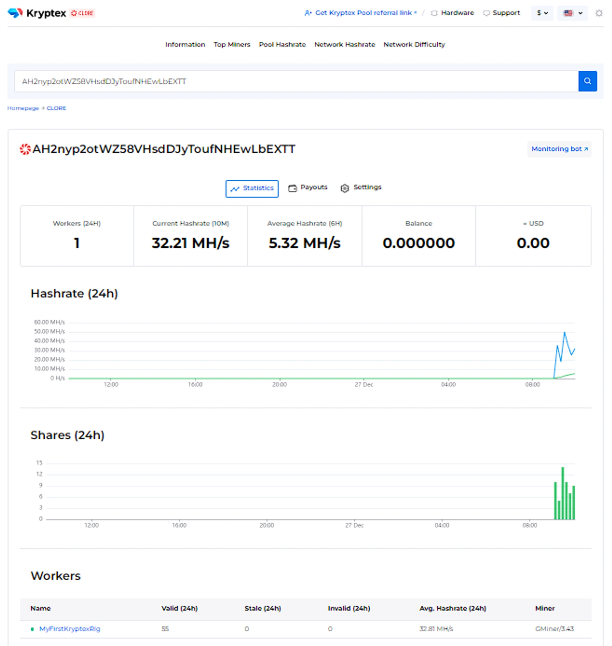 Step three — monitor the work of your miner on the pool