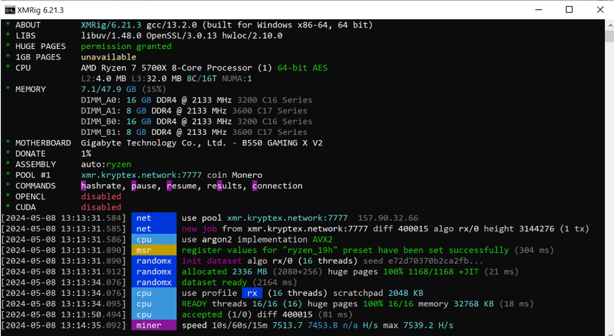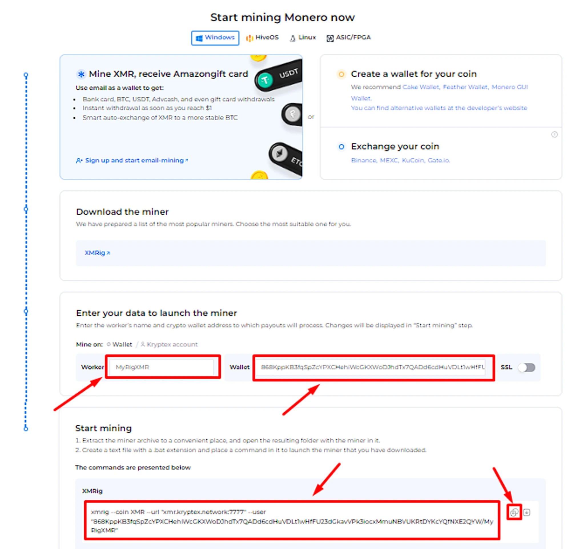 Pool address: xmr.kryptex.network:7029
