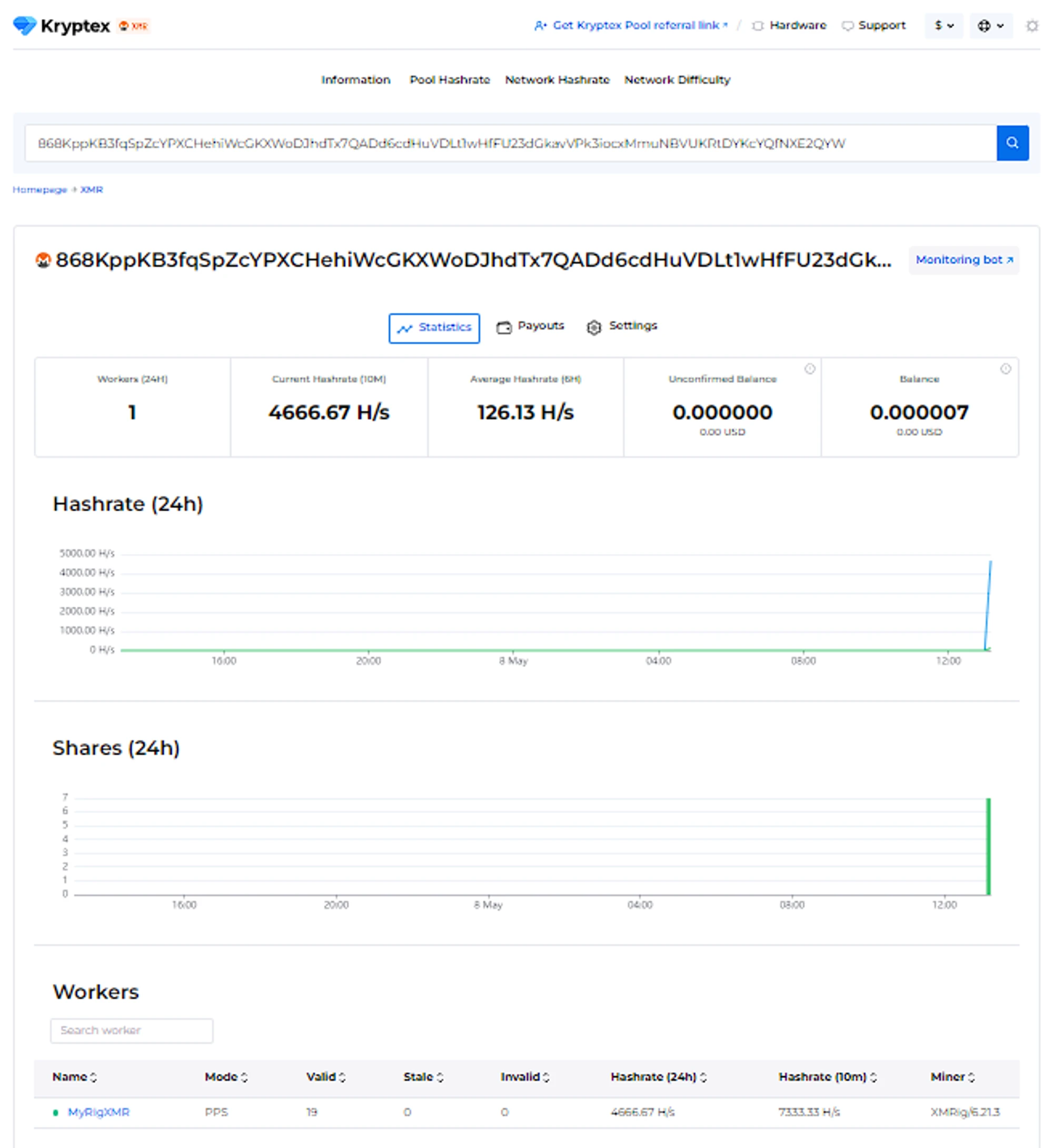 Step three — monitor the work of your miner on the pool