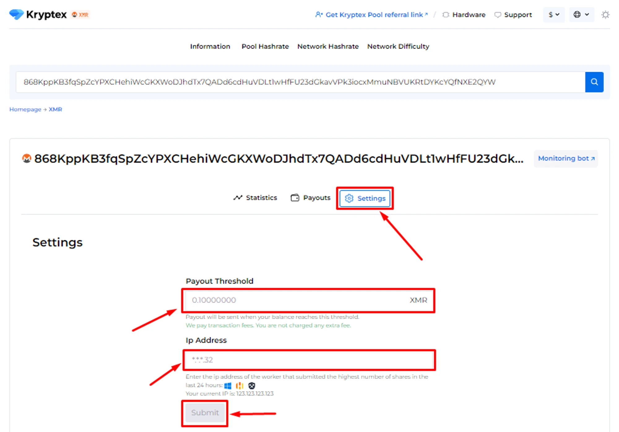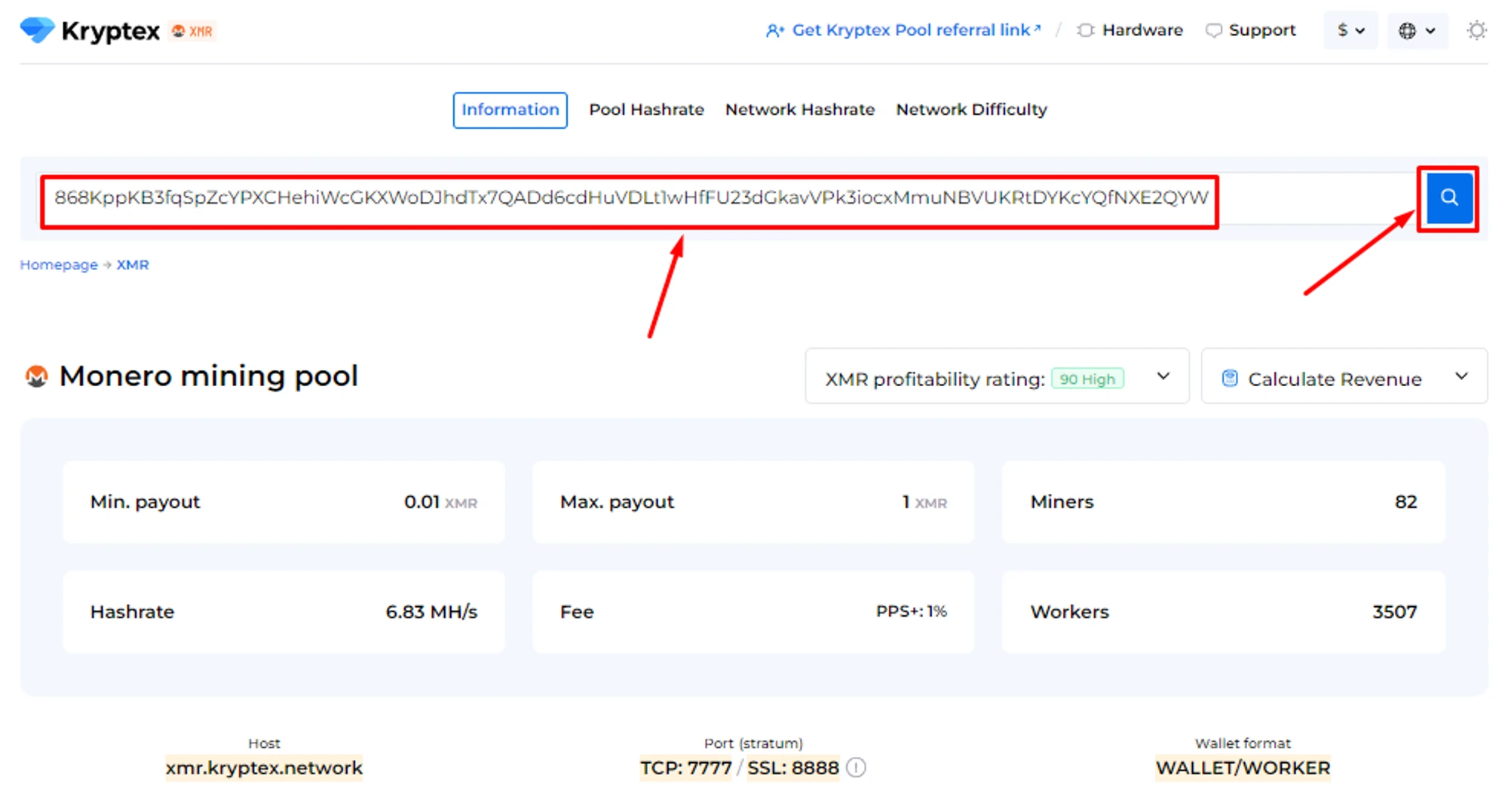Open the Monero pool page https://pool.kryptex.com/xmr