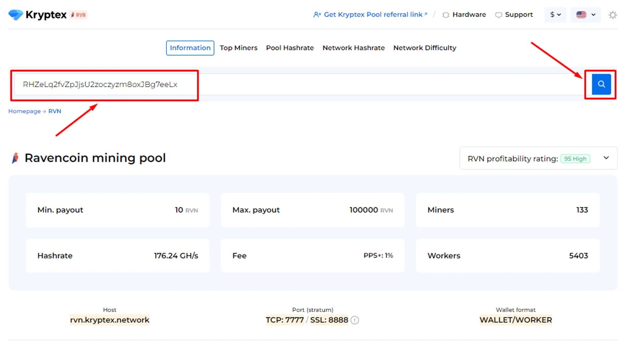 Pool address: rvn.kryptex.network:7031
