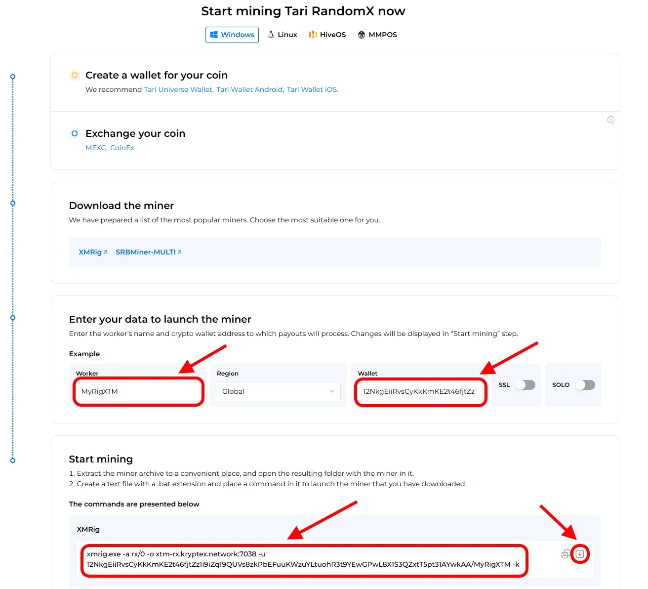 This guide explains how to mine Tari RandomX (XTM) using CPUs.