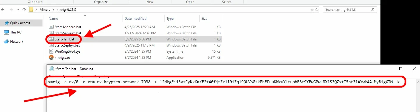 Download a miner for Tari RandomX coin. We recommend XMRig. We will use XMRig as an example.