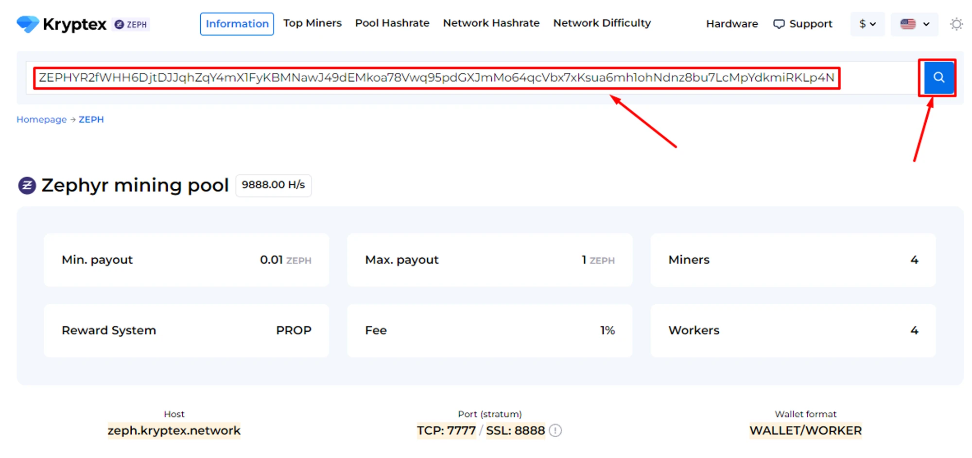 Open Zephyr pool page https://pool.kryptex.com/zeph