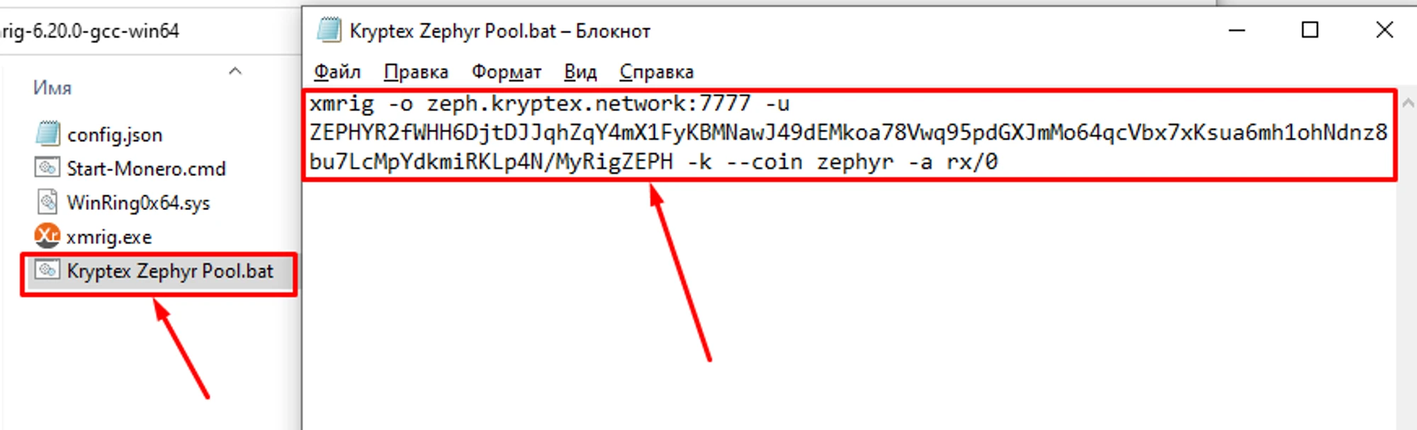 MyRigZEPH. Please note that the name is entered only in Latin letters, or numbers, without spaces.Copy the complete command from the field “BAT file example”
