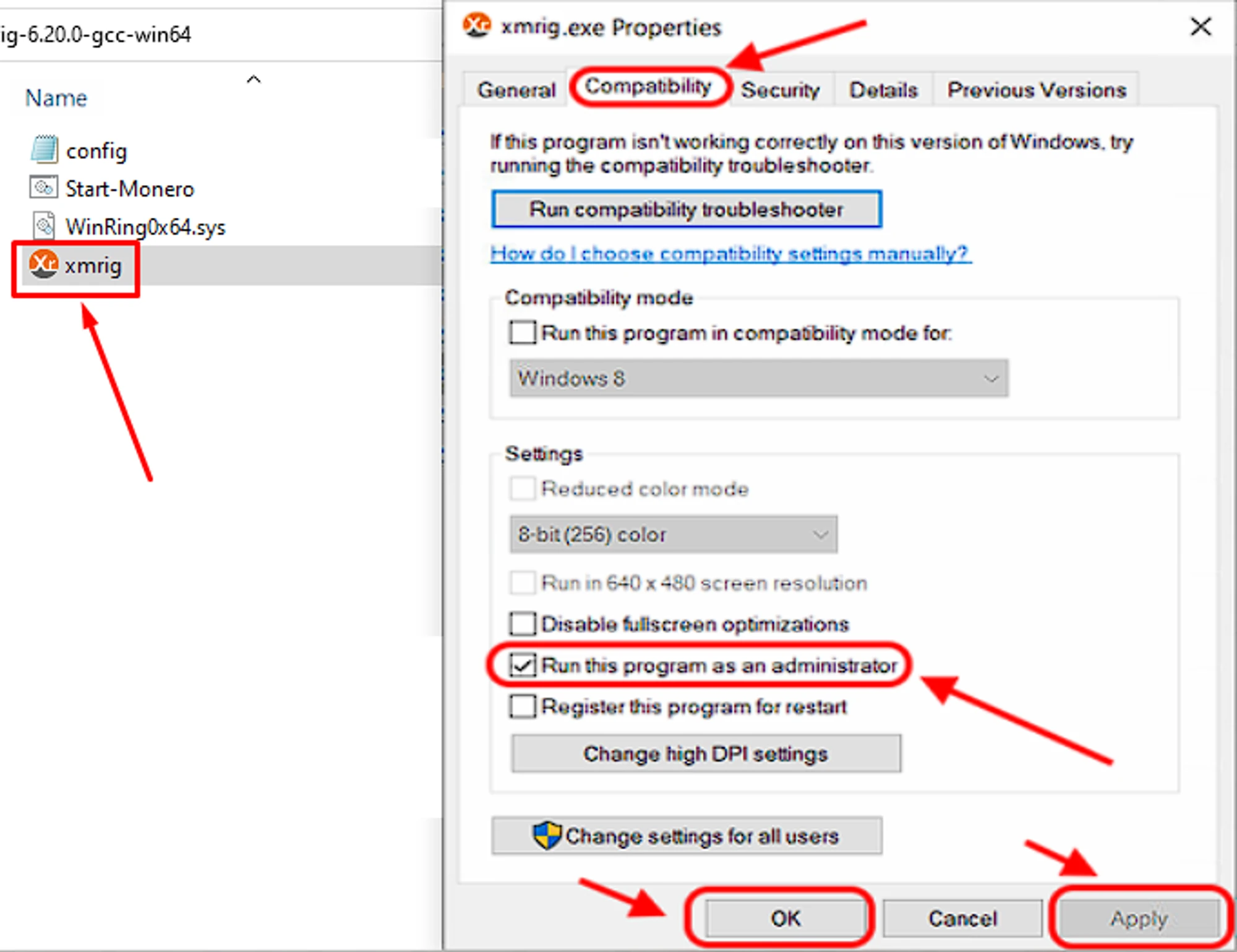 xmrig.exefileChoose “Properties”