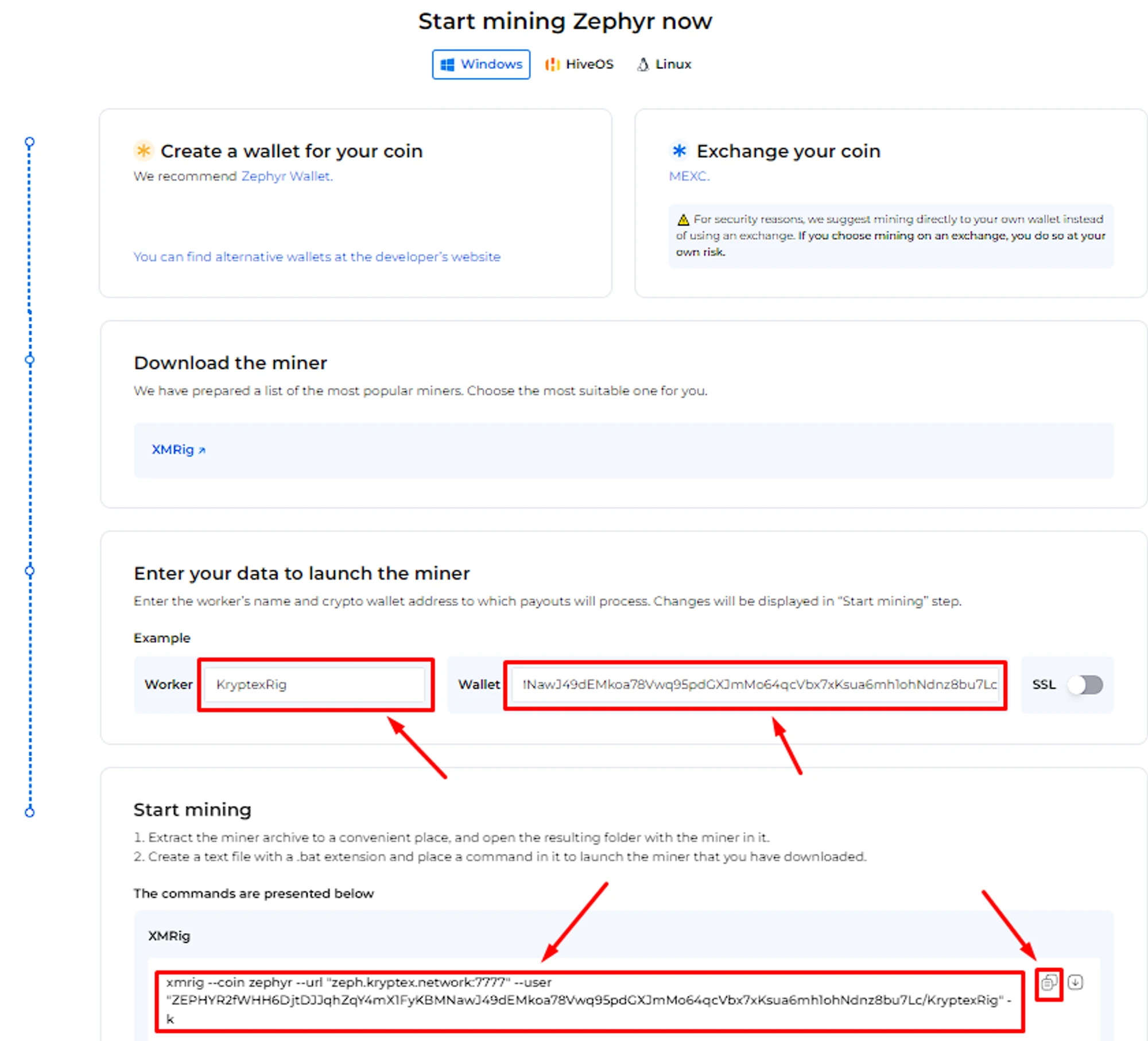 ZEPHYR2fWHH6DjtDJJqhZqY4mX1FyKBMNawJ49dEMkoa78Vwq95pdGXJmMo64qcVbx7xKsua6mh1ohNdnz8bu7LcMpYdkmiRKLp4NIn the “Worker name” field, enter the name of the mining rig that will mine on the pool, for example,