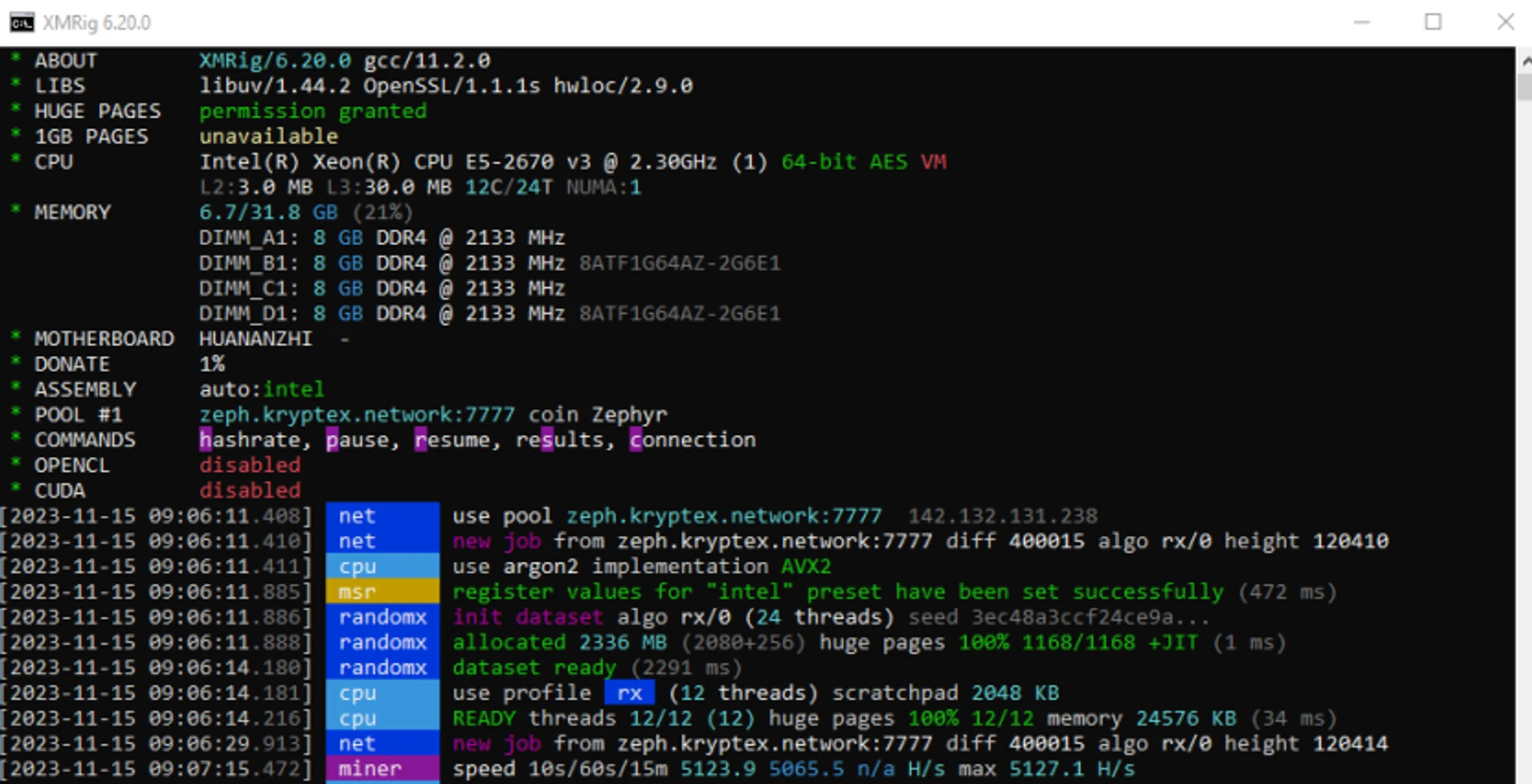 Pool address: zeph.kryptex.network:7030