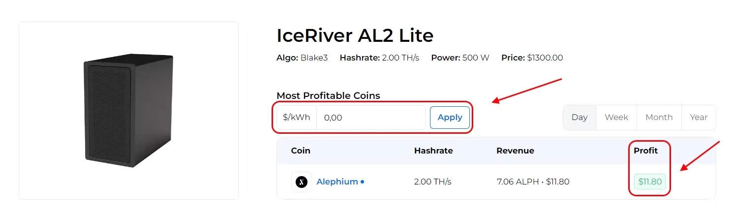 Currently, the daily profitability of IceRiver AL2 Lite is about ~12$, excluding electricity costs.