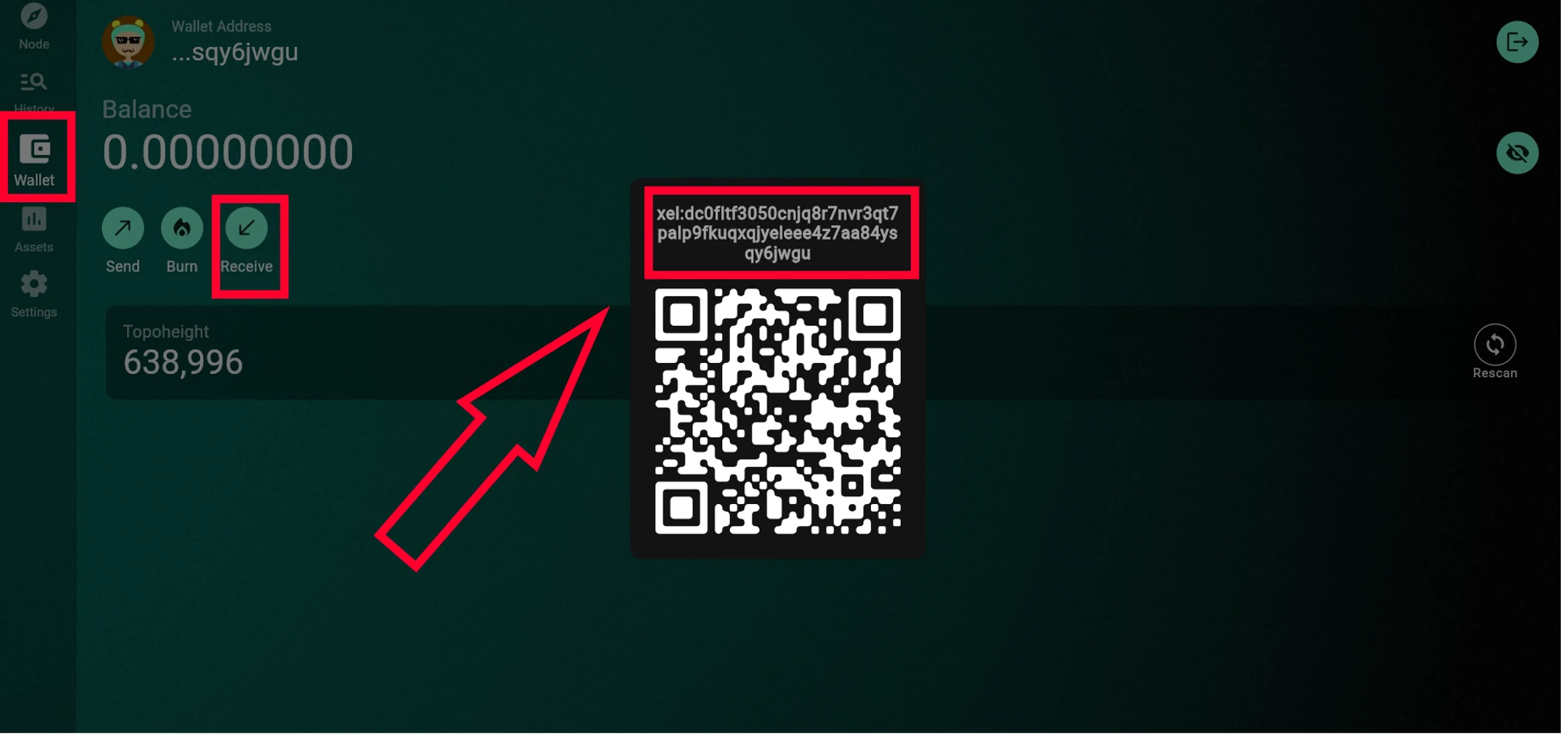 Get the wallet address. Go to the “Wallet” section and click on the “Receive” button. Copy the address and use it use it for mining or receiving coins to your wallet.