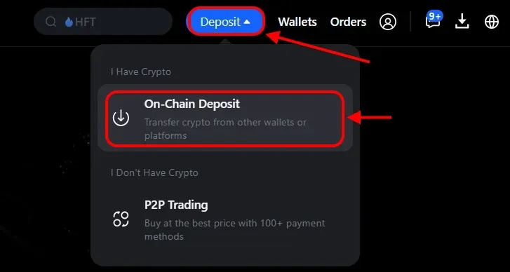 Once registered, click on “Deposit” icon, then choose “On-Chain Deposit.”