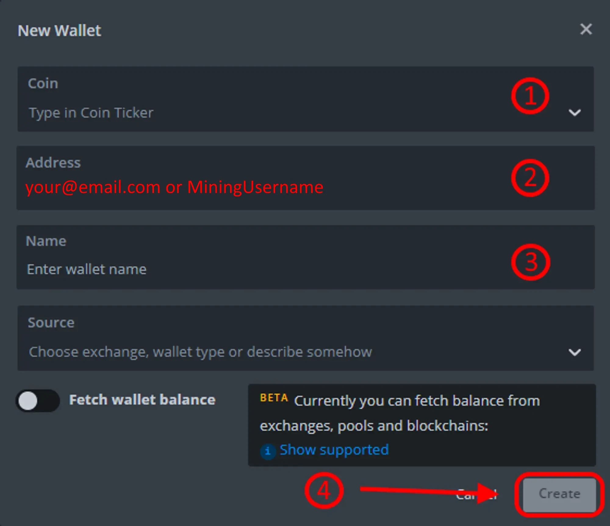 Вы так же можете использовать ваш имейл как адрес кошелька, но не все майнеры умеют работать с таким форматом. Если вы используете имейл, убедитесь что разделяете имейл и название воркера через слеш. Пример: miner@gmail.com/worker