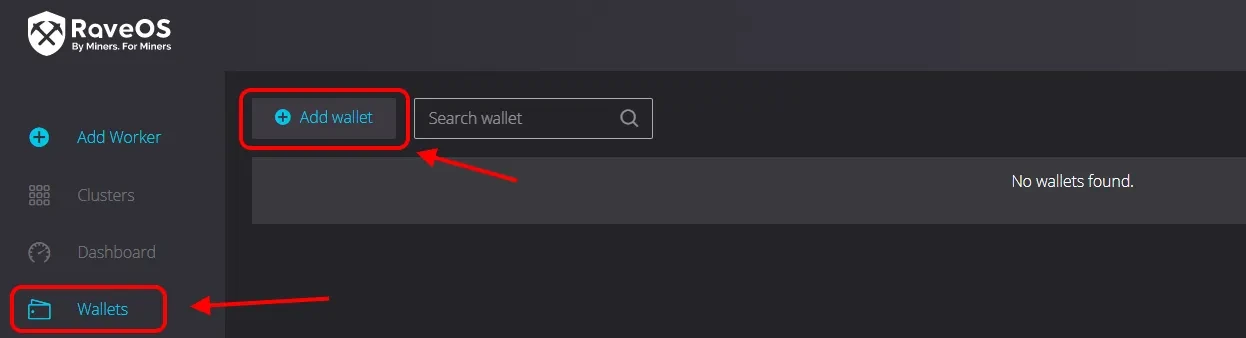 Нажмите вкладку “Wallets” в меню слева и нажмите “Add wallet”.