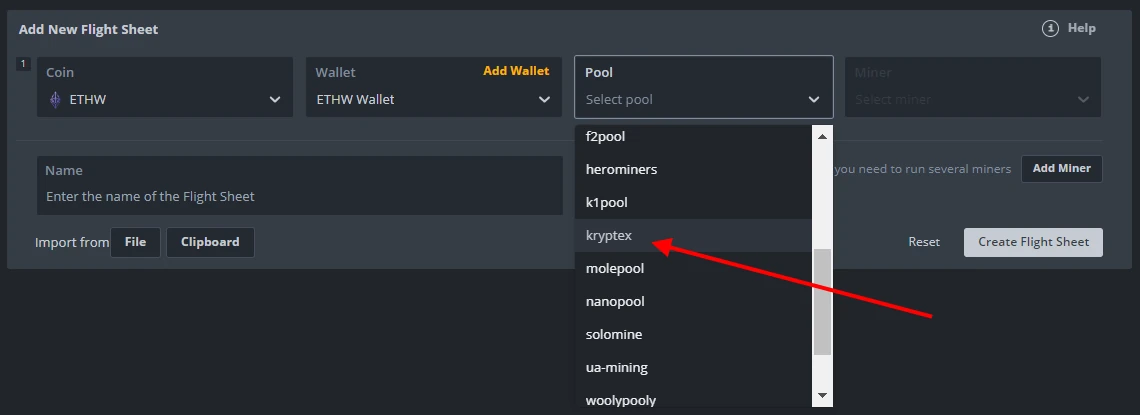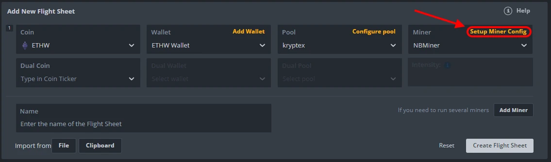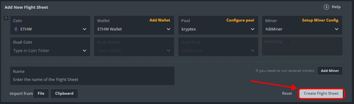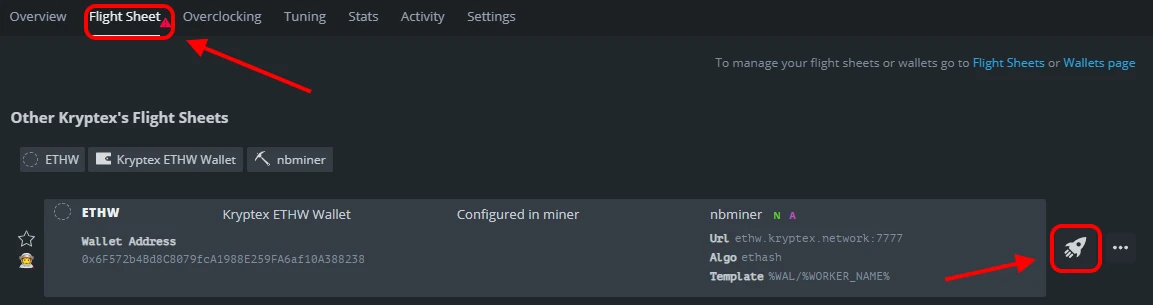 Choose your newly created Flight Sheet;