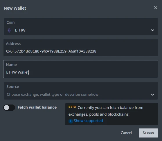 ETHWcoin.Choose already created wallet from the list.