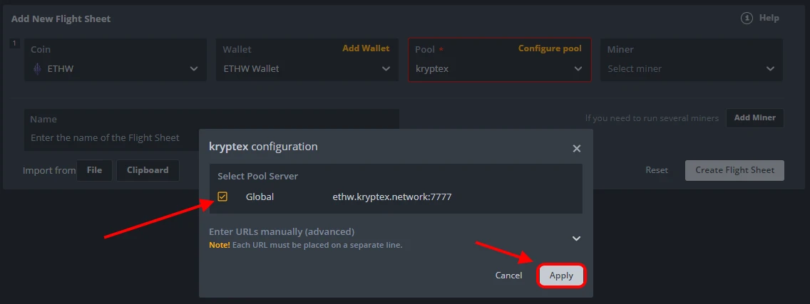 ethw.kryptex.network:7034And apply your settings.