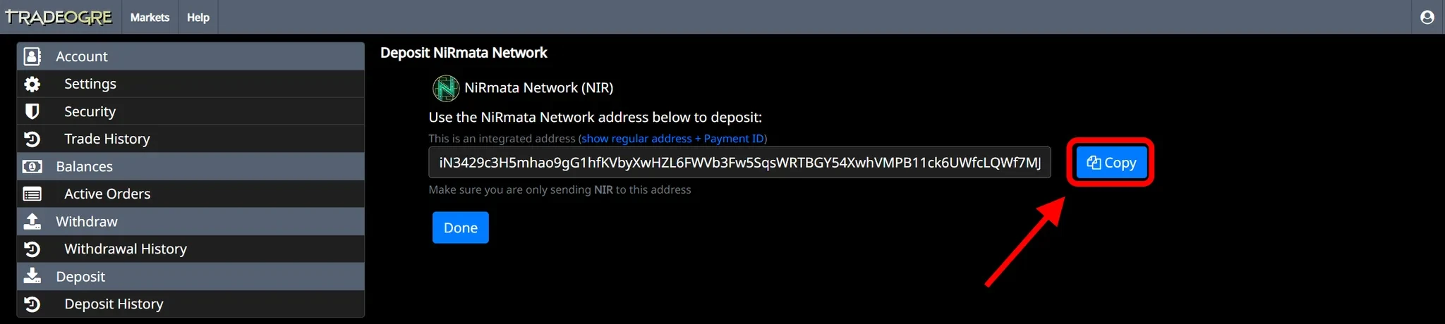 That’s it! You now have a deposit address for the exchange. Click the icon next to the wallet address to copy it again if needed. Use this address for mining or receiving coins to your account.