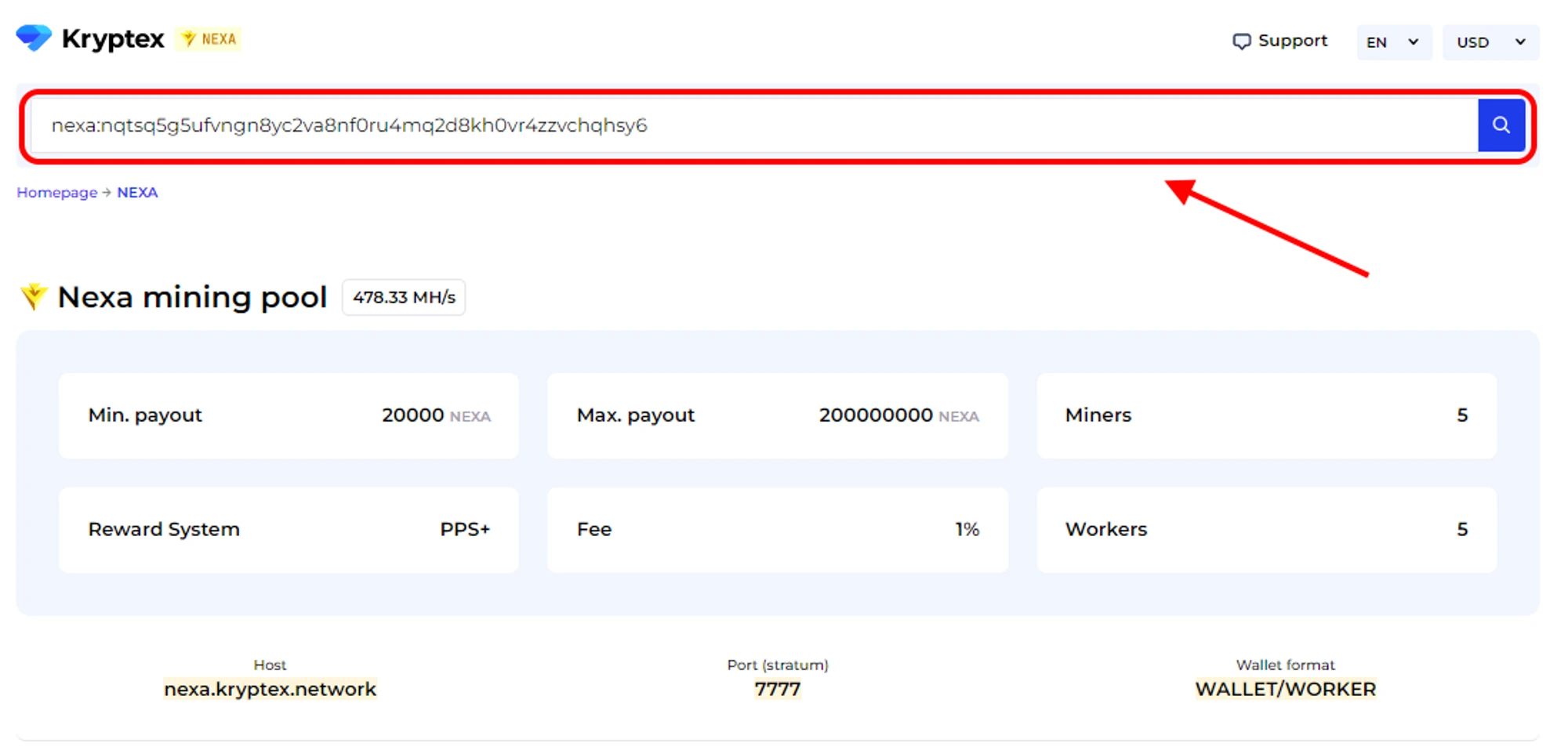 Open the NEXA pool page https://pool.kryptex.com/nexa