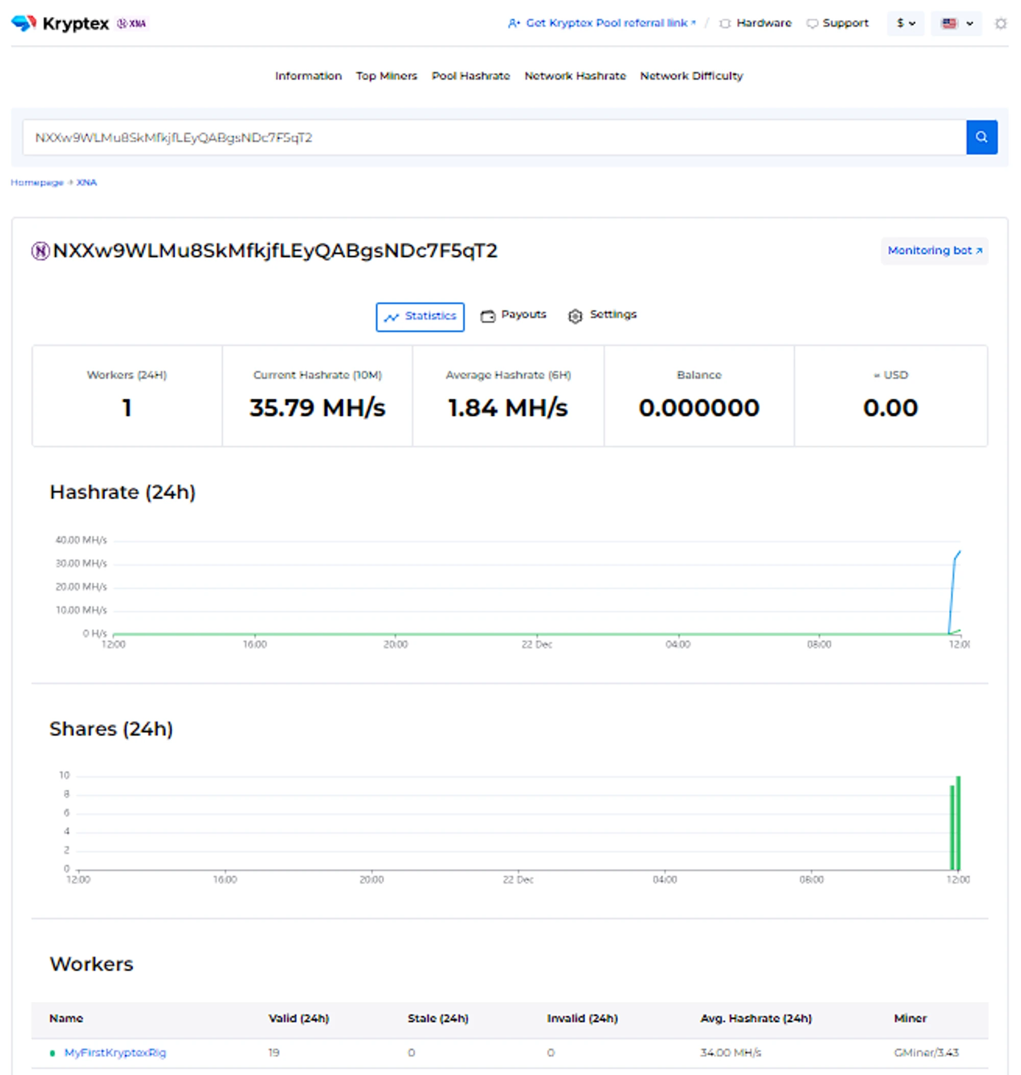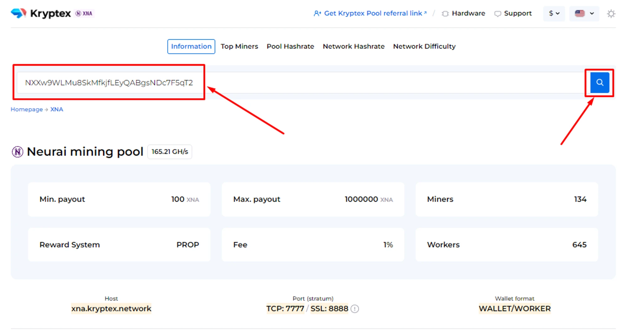 Open the Neurai pool page https://pool.kryptex.com/xna