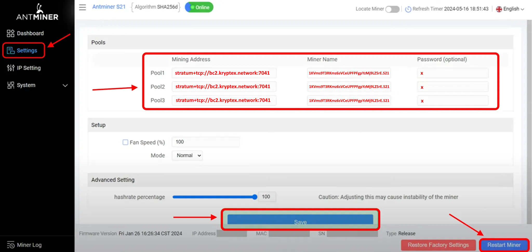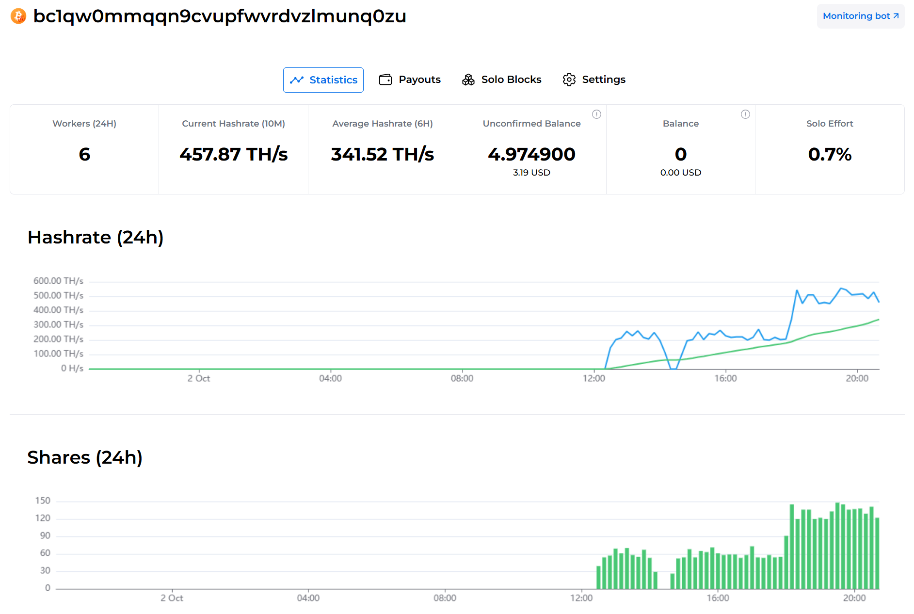 For additional monitoring, you can also track the performance of your ASIC through our dedicated monitoring bot on Telegram: https://t.me/KryptexMonitoringBot.