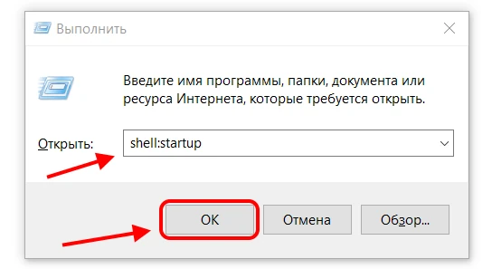 shell:startupі натисніть ОК.