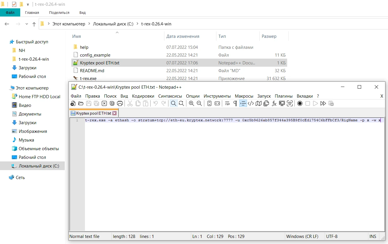 .txtна.batГотово! Запустіть отриманий файл і майнінг розпочнеться.
