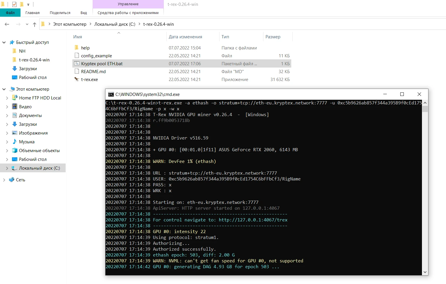 t-rex.exe -a ethash -o stratum+tcp://ethw.kryptex.network:7034 -u WALLET_ADDRESS/WORKER_NAME -p x -w x