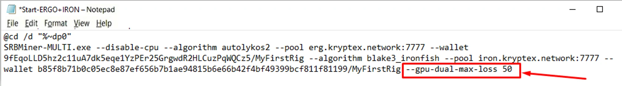 Setting --gpu-dual-max-loss in SRBMiner