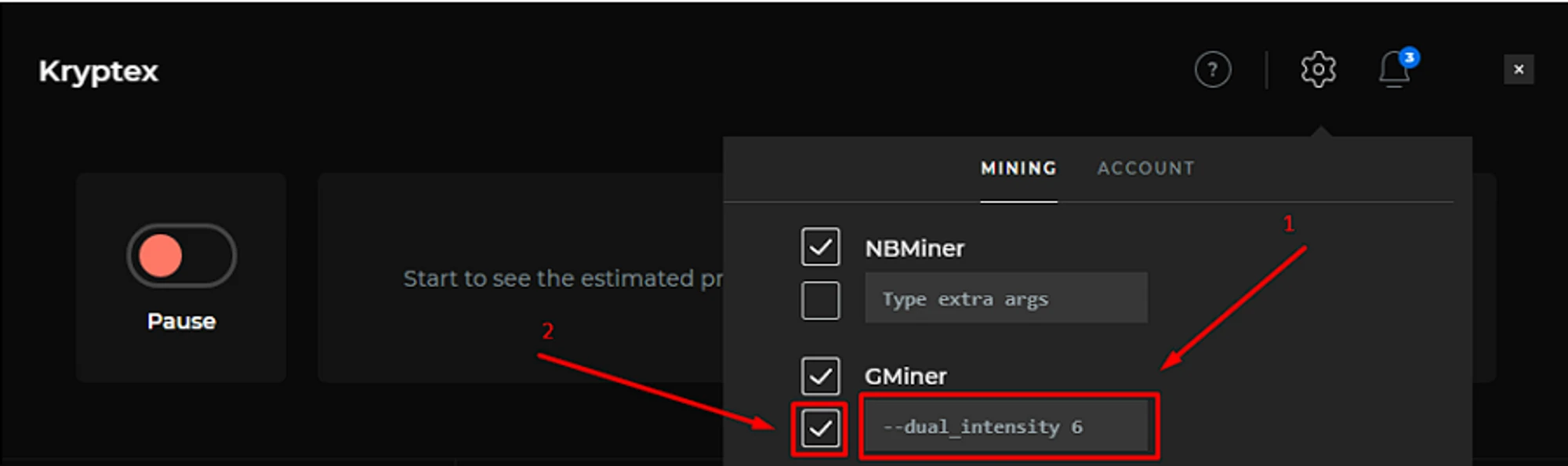 Open Kryptex settings → "Mining".