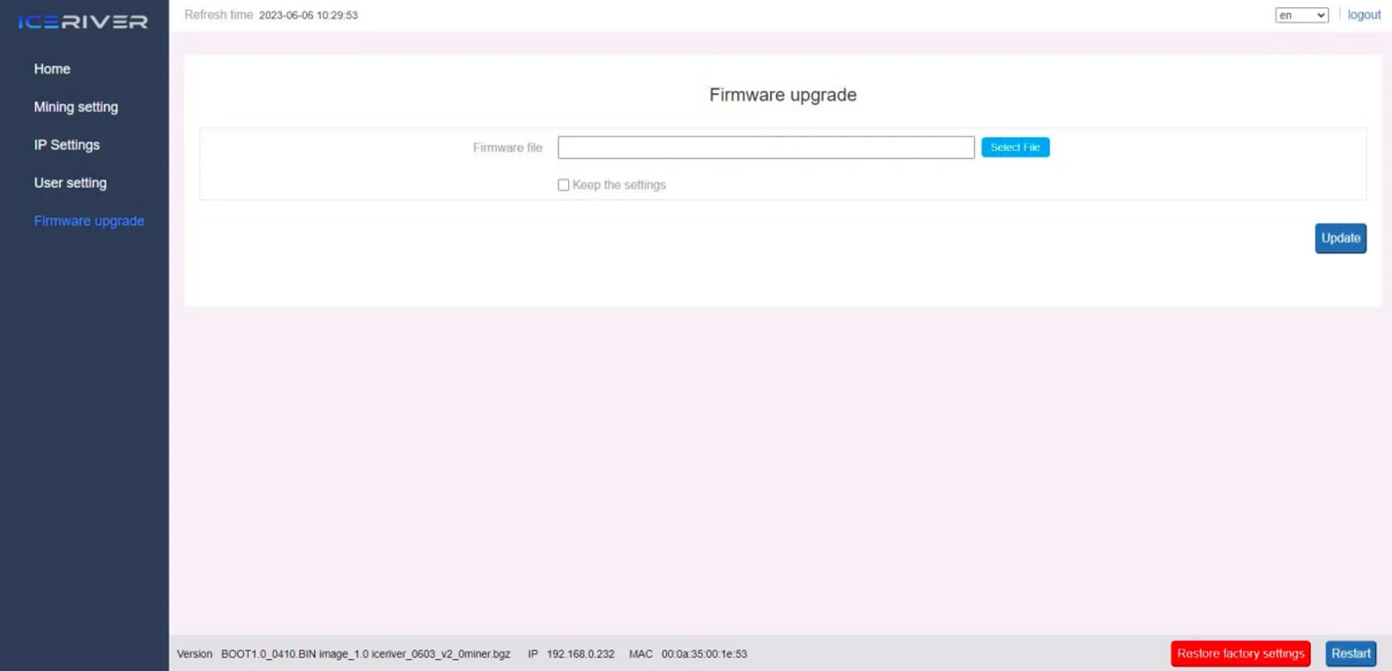 Click “Save” to save the settings, and then click “Restart” to restart the ASIC.