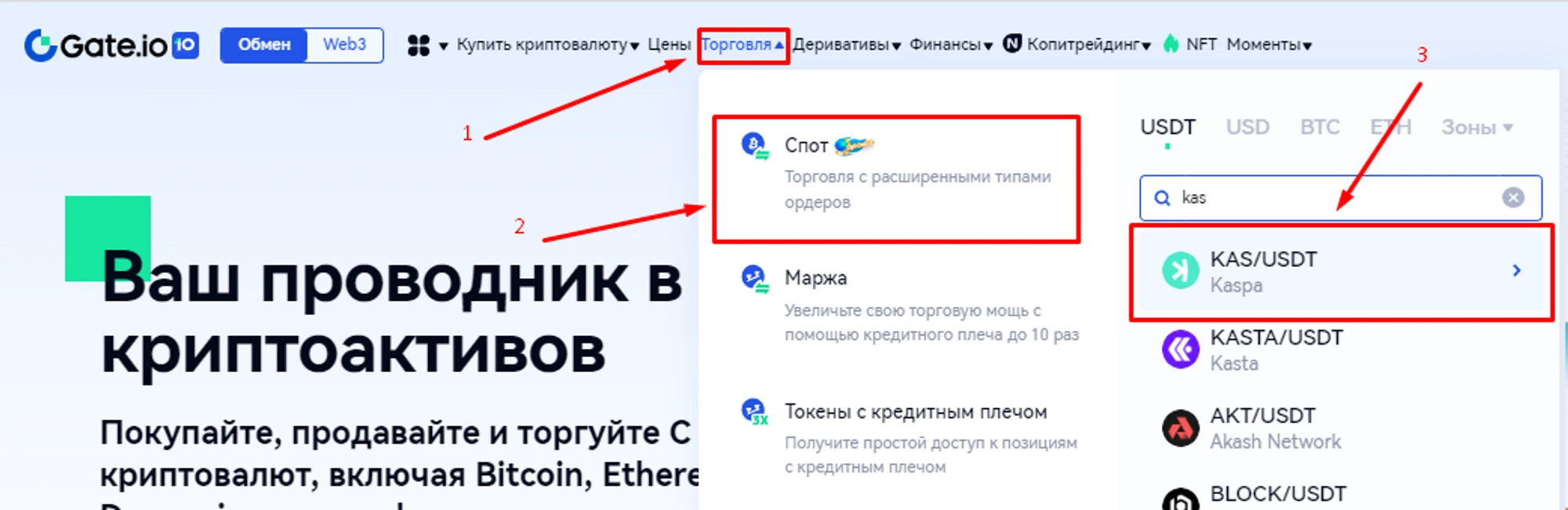 Мы рассмотрим на примере биржи Gate.io и монеты KASPA, но вы можете по аналогии работать с любой биржей и любой монетой.
